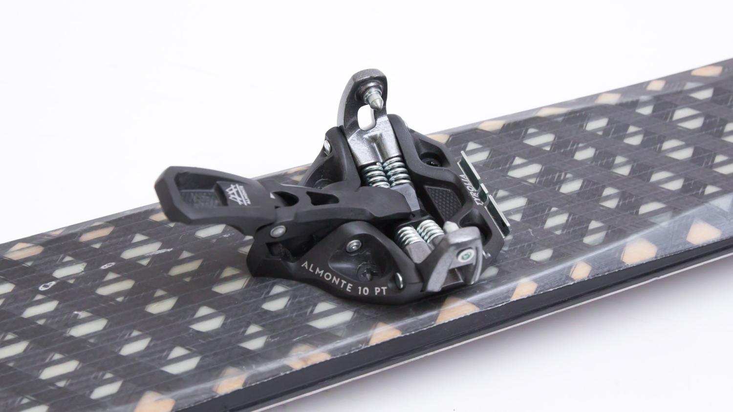 The Almonte Pin Touring ski binding was designed so that every surface and every bar makes statical and mechanical sense, avoiding any additional weight. The recesses where the screws are located clearly reflect Tyrolia's brand DNA.