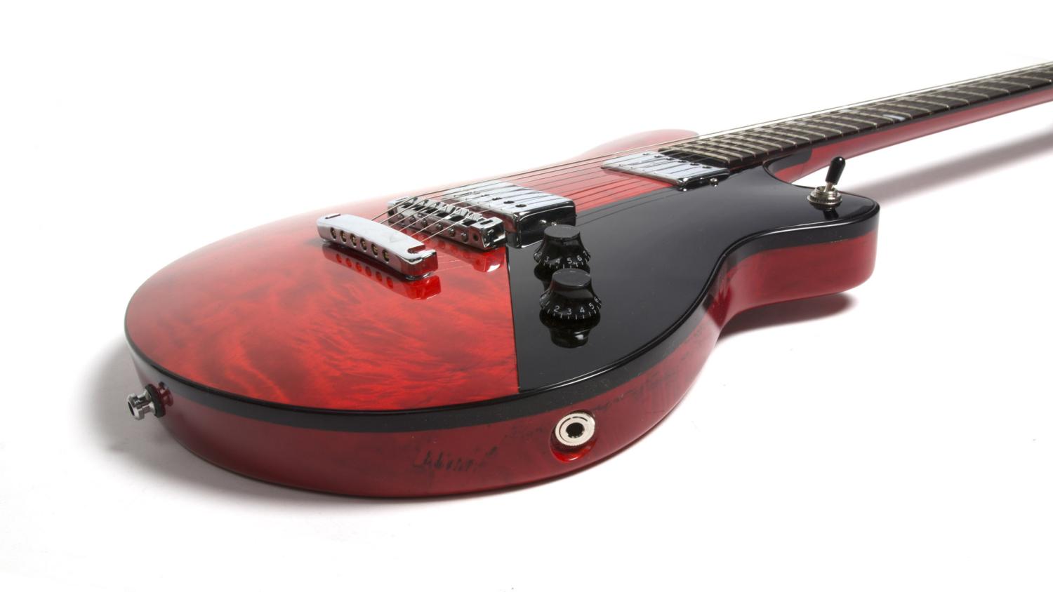 Neck and body are all from chopped down trees of Adams home (=emoh)-town Vienna. The neck is made out of Celtis. (thanks to Vienna City Gardens MA42), the body aspen (Pappel). The acrylic pick guard is embedded flush with the body surface an held in place by magnets.