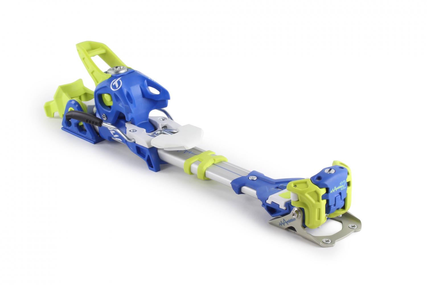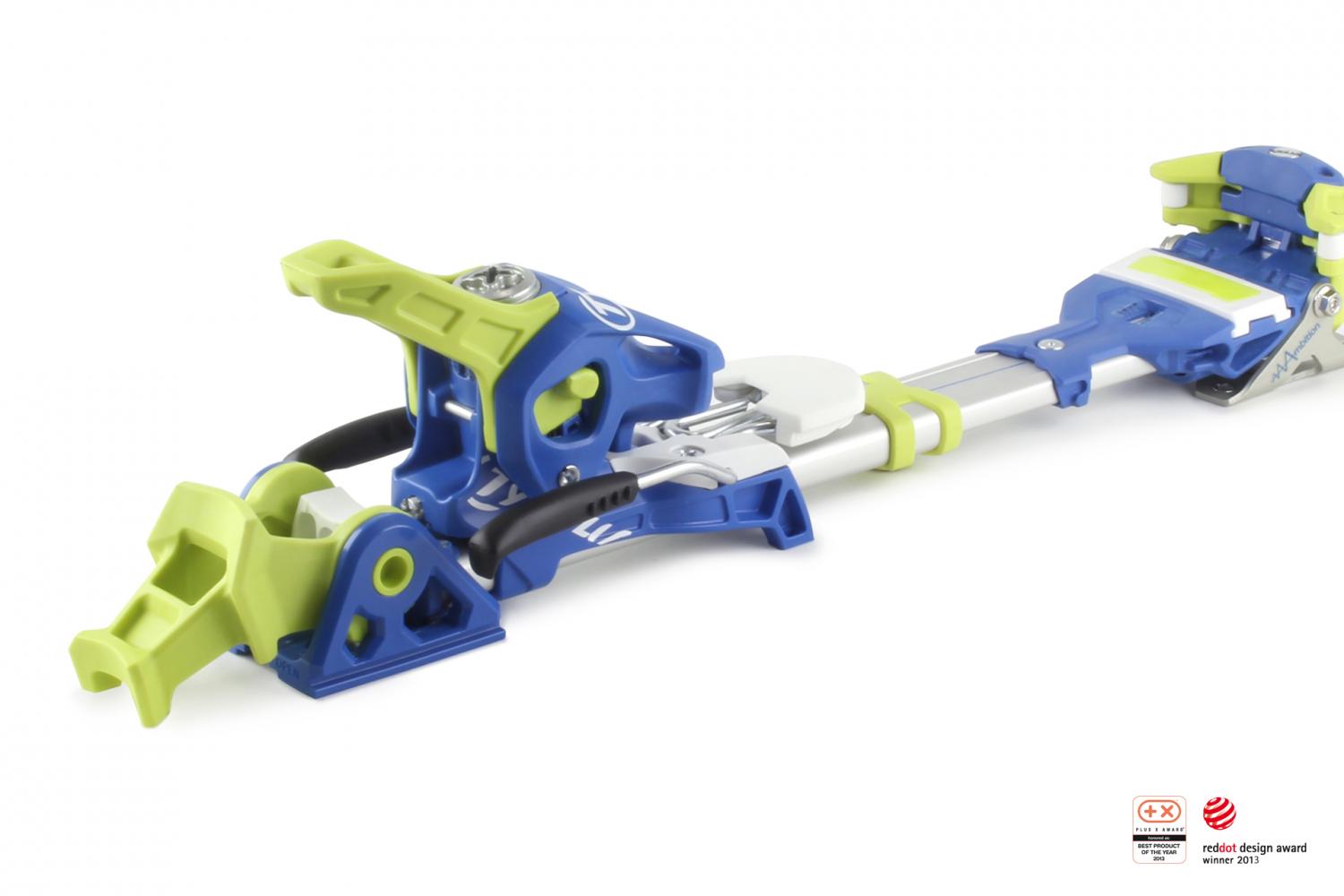 Using the design-theme "frame" that we introduced at the Tyrolia Adrenalin freeride binding, we focused primarily on weight reduction in connection with performance and stability. The design illustrates the low platform height as well. Designed not as "application", but as touring tool for athletes, the Ambition binding offers a high performance ascension. A telescope system and the broad base of the heel transfer direct power to the ski at each descent. Standing position 35mm, Z 4-12. For touring and alpine ski boots.