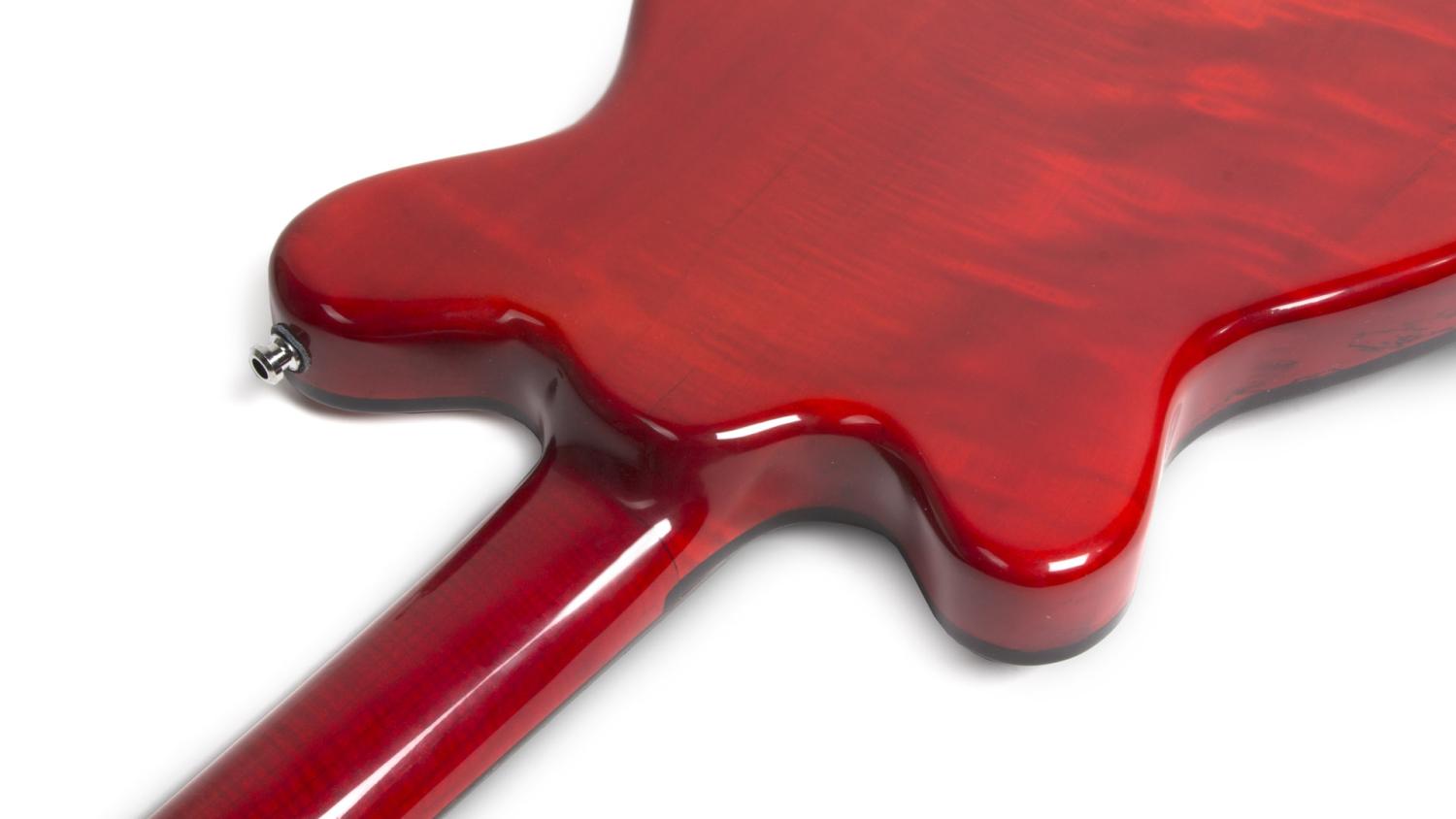 Neck and body are all from chopped down trees of Adams home (=emoh)-town Vienna. The neck is made out of Celtis. (thanks to Vienna City Gardens MA42), the body aspen (Pappel). The acrylic pick guard is embedded flush with the body surface an held in place by magnets.