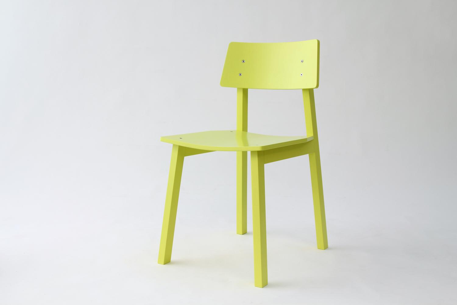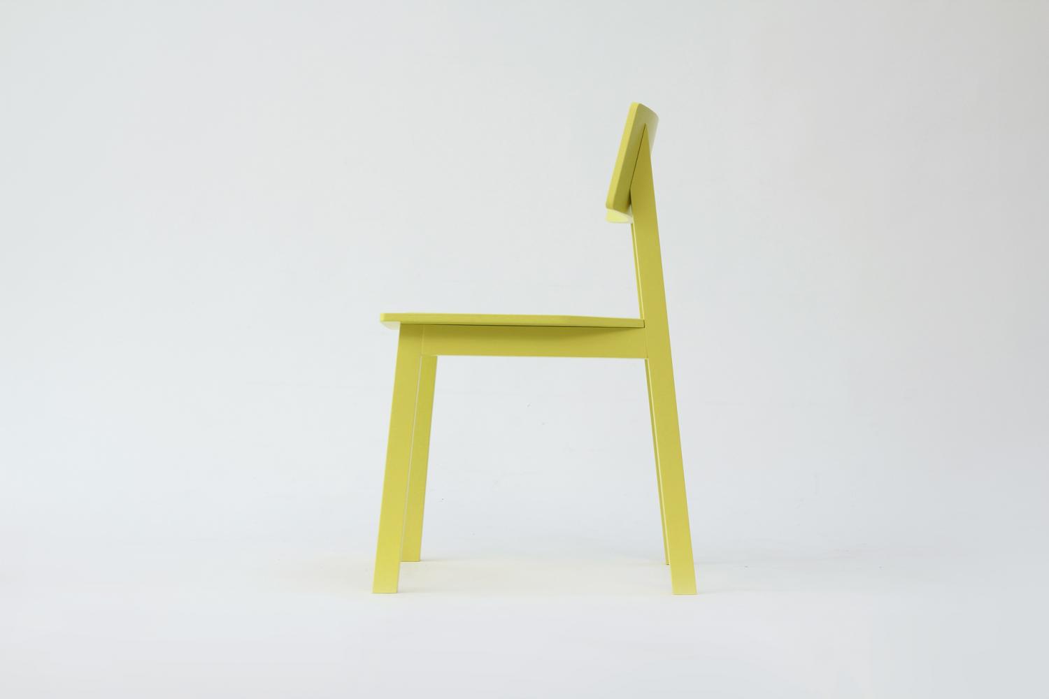 Ernstl is a chair which is reduced to a minimum complexity. The connection of the two structurally identical side-frames with the seat and the back guarantee stability. The chair is designed for a handcrafted production in small numbers and at a reasonable price. Material & Colors: solid ash, sulphur-yellow, white, black. Manufacturer: AWS DESIGNTEAM, write us an email for order details.